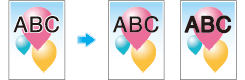 Configure the [Black Over Print:] setting to superimpose black color on a neighboring color to print so as to prevent white space being generated around black characters or figures. You can select whether to print black only around the characters or around both characters and figures.