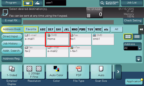 To send scanned original data to a shared folder on the server or your computer, select the [Home] key.