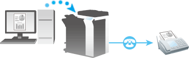 The general facsimile sends and receives paper documents. In contrast, the PC-Fax TX function sends a document data on a Windows PC as if it was printed on this machine.