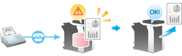 When the machine cannot print a received fax due to paper jam or exhaustion of consumables, the received fax is stored in the memory until this machine is ready to print.
