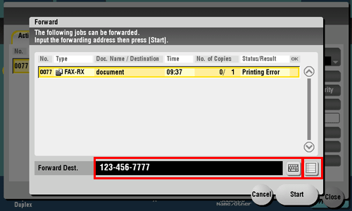 Select a job to be forwarded, specify the forwarding destination and then tap [OK].