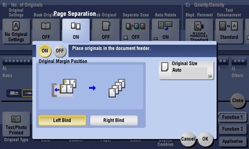 [Centering] | If you select Book Original, this item is set automatically. The original image is copied at the center of the page without enlarging it. Cancel the setting if necessary. |