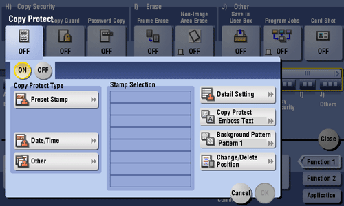 [Copy Protect Type] | Select a stamp used. The date and time can also be printed.