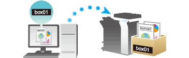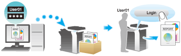 Since you need to be authenticated in this machine to print the data saved in the box, this function is suitable for safely printing highly confidential documents. When you are successfully authenticated, the print data of the login user is automatically printed. This enhances security as well as ensures smooth operation.
