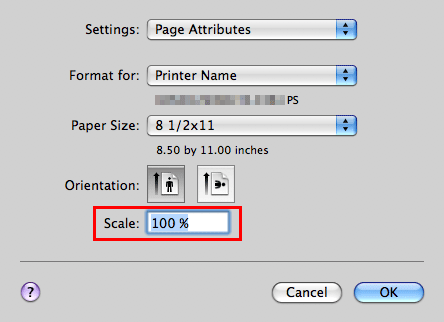 In Mac OS X 10.5/10.6/10.7/10.8/10.9, you can configure the same setting in [Paper Size:] in the [Print] window.