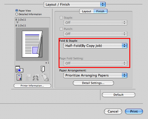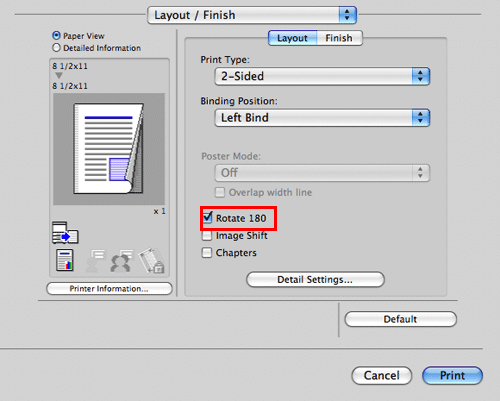 In [Print Type:] in [Layout / Finish], select [2-Sided]. [2-Sided] is specified by default.
