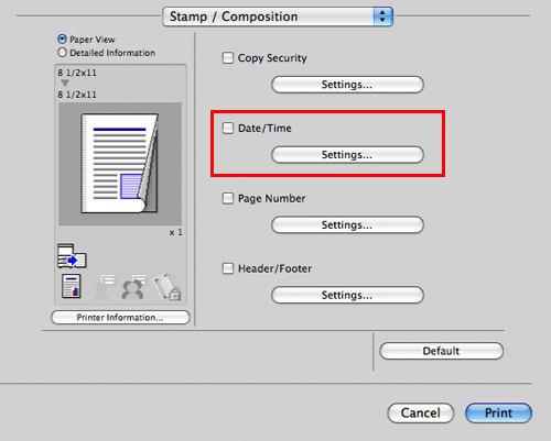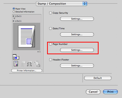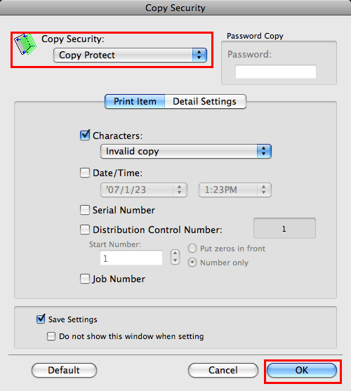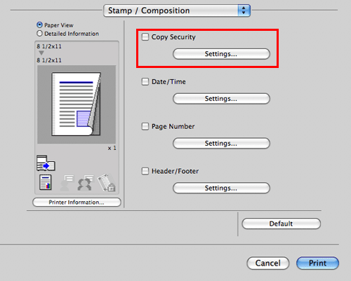In [Stamp / Composition], select the [Copy Security] check box, then click [Settings...].