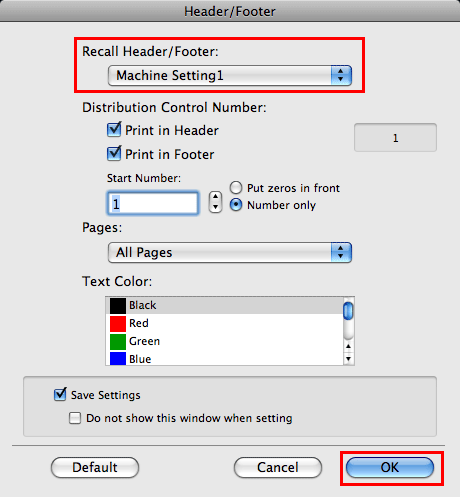 When the [Save Settings] check box is selected, the settings are saved. When the [Do not show this window when setting] check box is selected, this dialog box is not displayed next time. If you always use the same file name and box number, selecting this check box eliminates the need for entering them each time.
