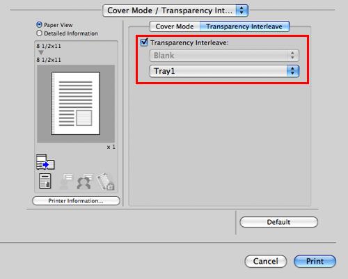 In [Cover Mode / Transparency Interleave] or [Cover Mode] (Mac OS X 10.7 or later), select the [Transparency Interleave:] check box.
