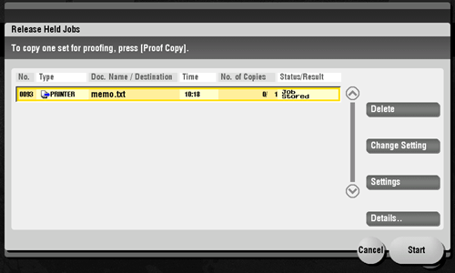 Because you can check the print result before starting printing the remaining copies from the Touch Panel, this function is helpful to prevent a lot of misprints.