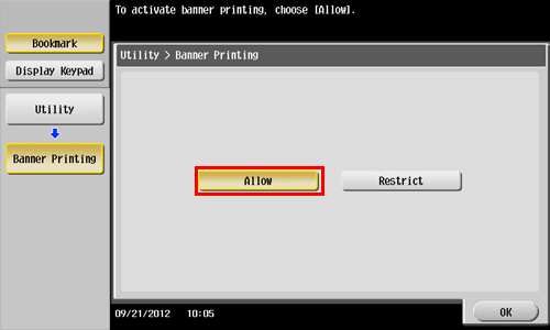 If [ID & Print] is set to [ON] in [ID & Print Settings], printing on banner paper is disabled (default: [OFF]). For details on [ID & Print Settings], refer to Here.