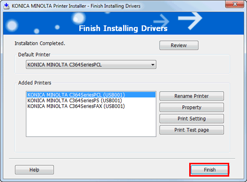 When you finish installing the printer driver, configure the default settings of the printer driver. For details, refer to Here.