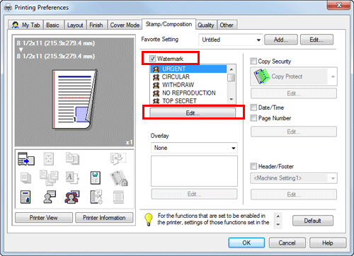 In the [Stamp/Composition] tab, select the [Watermark] check box, and click [Edit].