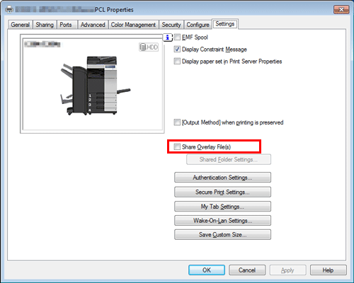 In the [Settings] tab, select the [Share Overlay File(s)] check box.