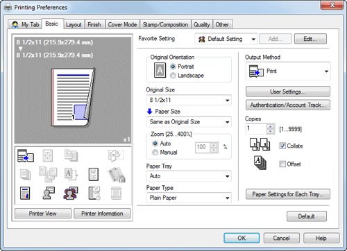 1. On the [Basic] tab, set up the print function which uses the password for [Secure Print], [Save in User Box], [User Authentication] and others.