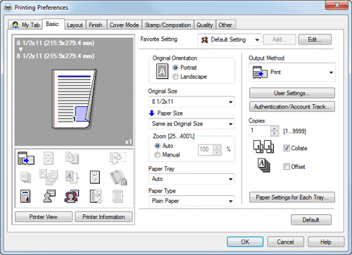In the [Basic] tab, you can configure basic settings about paper or printing. Functions that are frequently used in normal printing are placed in this tab.