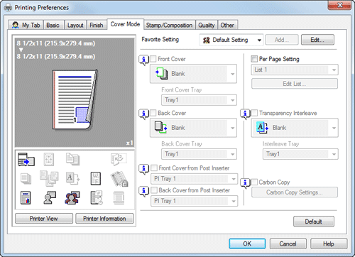 [Back Cover] | Select this check box to insert and print on a back cover. In [Back Cover Tray], select the paper tray for the back cover. Then, select whether to print on the inserted back cover.