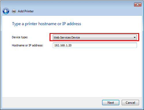 In Windows Vista/Server 2008, you can add a Web service device using the addition function of the printer after connecting this machine.