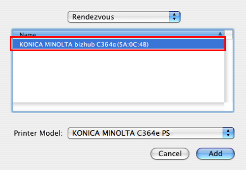 From the [Name] list, select the desired printer for Rendezvous connection.