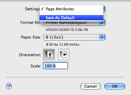In the [Page Setup] window of the printer driver, you can change the default settings for paper and zoom ratio.