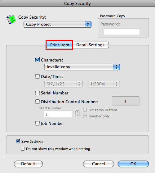 To use [Password Copy], you need to install the optional Security Kit and enable the Password Copy function of this machine. For details on how to enable the Password Copy function, refer to Here.