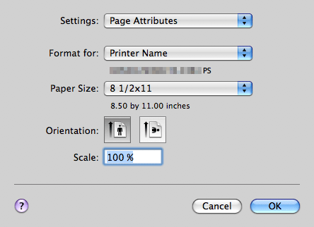 In Mac OS X 10.5/10.6/10.7/10.8/10.9, you can also configure [Paper Size] and [Orientation] in the Print window.