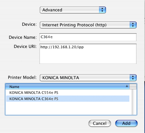 Set the [Device:] to [Internet Printing Protocol (http)].