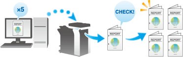 • When you print a large number of copies, use of the Proof Print function will prevent a large number of misprints being created, thereby reducing the amount of waste paper generated. For details, refer to Here.