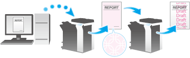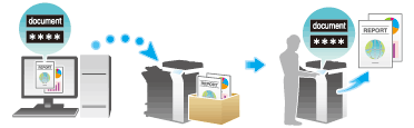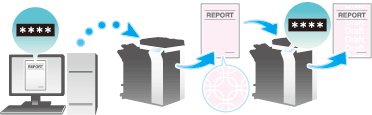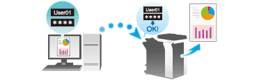 Since you need to be authenticated in this machine to print the data saved in the box, this function is suitable for safely printing highly confidential documents. When you are successfully authenticated, the print data of the login user is automatically printed. This enhances security as well as ensures smooth operation.