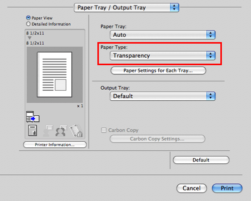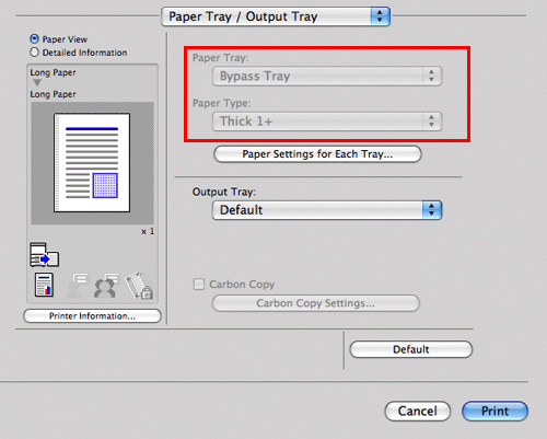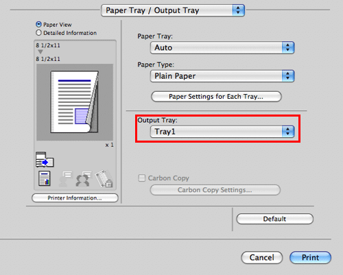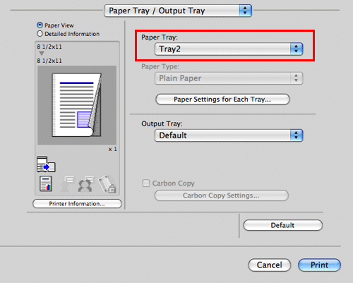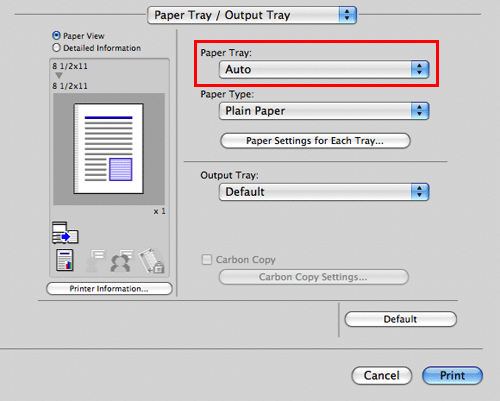 In [Paper Tray:] in [Paper Tray / Output Tray], select the paper tray for printing.