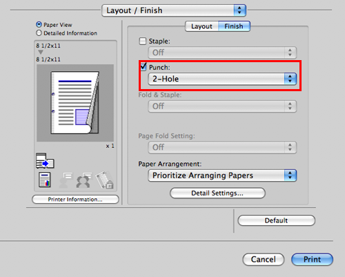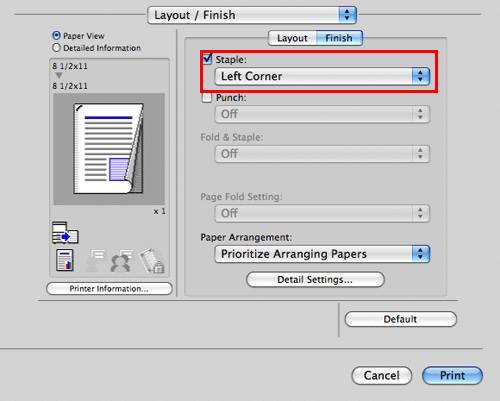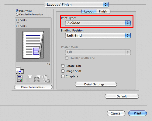 In [Print Type:] in [Layout / Finish], select [2-Sided]. [2-Sided] is specified by default.
