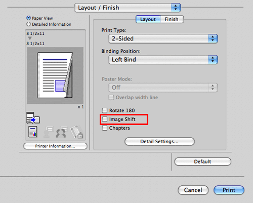 1. In [Layout / Finish], select the [Image Shift] check box.
