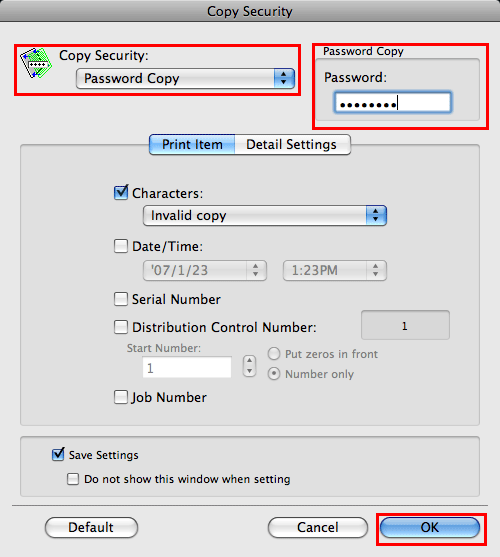 2. Select [Password Copy], enter the password to be embedded (using up to eight characters), and then click [OK].