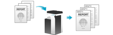 Add the date, time and any other desired text in the top and bottom margins (header/footer) of the specified page. You must register the information to be added for the header and footer in advance on this machine.