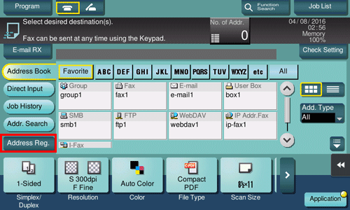 • You can also register fax destinations using Web Connection. For details, refer to Here.