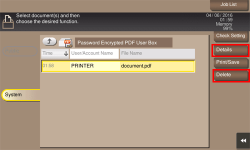 Tap [System] - [Password Encrypted PDF].