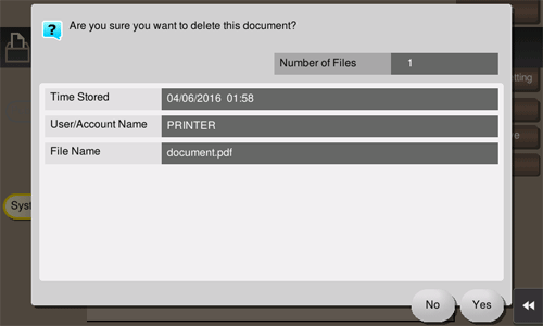 Select a file, then tap [Delete]. The file is deleted. You can select multiple files and delete them simultaneously. Check the file details, then tap [Yes].