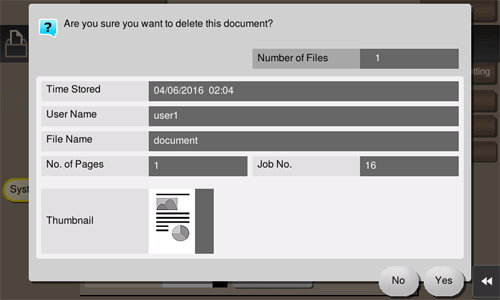 Select a file, then tap [Delete]. The file is deleted. You can select multiple files and delete them simultaneously. Check the file details, then tap [Yes].