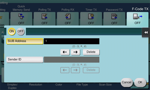 [SUB Address] | Enter a SUB address. To display the Keypad, tap the input area for the numeral.