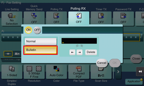 Optionally, you can use the Polling TX function to register files for polling with a Bulletin User Box of this machine. For details on the Polling TX function, refer to Here.