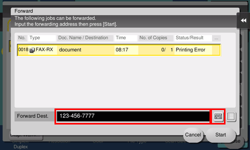Select a job to be forwarded, specify the forwarding destination and then tap [OK].