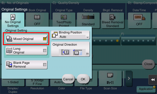 [ON]/[OFF] | Select [ON] to specify Book Original. |