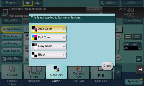 Scan by automatically selecting either [Full Color] or [Gray Scale] according to the original color.
