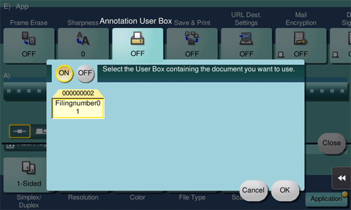 Annotation User Box is a box in which the function to add filing numbers to the saved original data for each job or page.