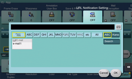When sending by E-mail, you can specify the subject and text of the E-mail message and change the sender E-mail address ("From" address).