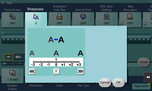 [Text] | Tap this button to scan an original, which consists mostly of text, at the optimum level of image quality. This function sharpens the edges of each character, creating easy-to read images. |