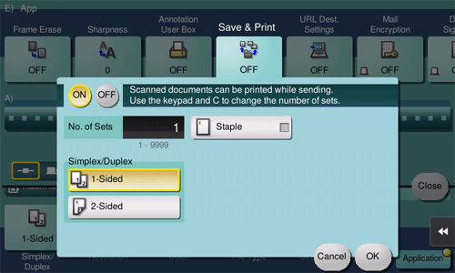 [ON]/[OFF] | Select [ON] to send and print at the same time. |