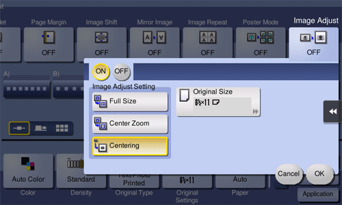 [Minimal] | Place an original image in the center after slightly reducing the size of the original when copying. Select this option when copying the entire original image, including its edges. |