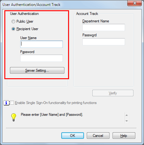 If your computer can communicate with this machine, clicking [Verify] executes authentication based on the authentication information that has been input. You can check the authentication information for errors before starting printing.