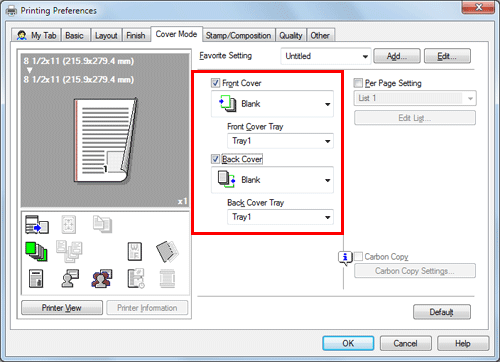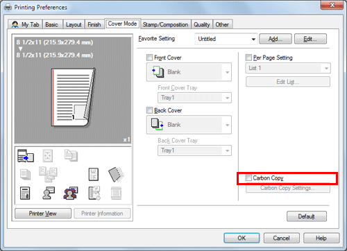 In the [Cover Mode] tab, select the [Carbon Copy] check box.